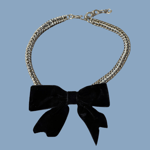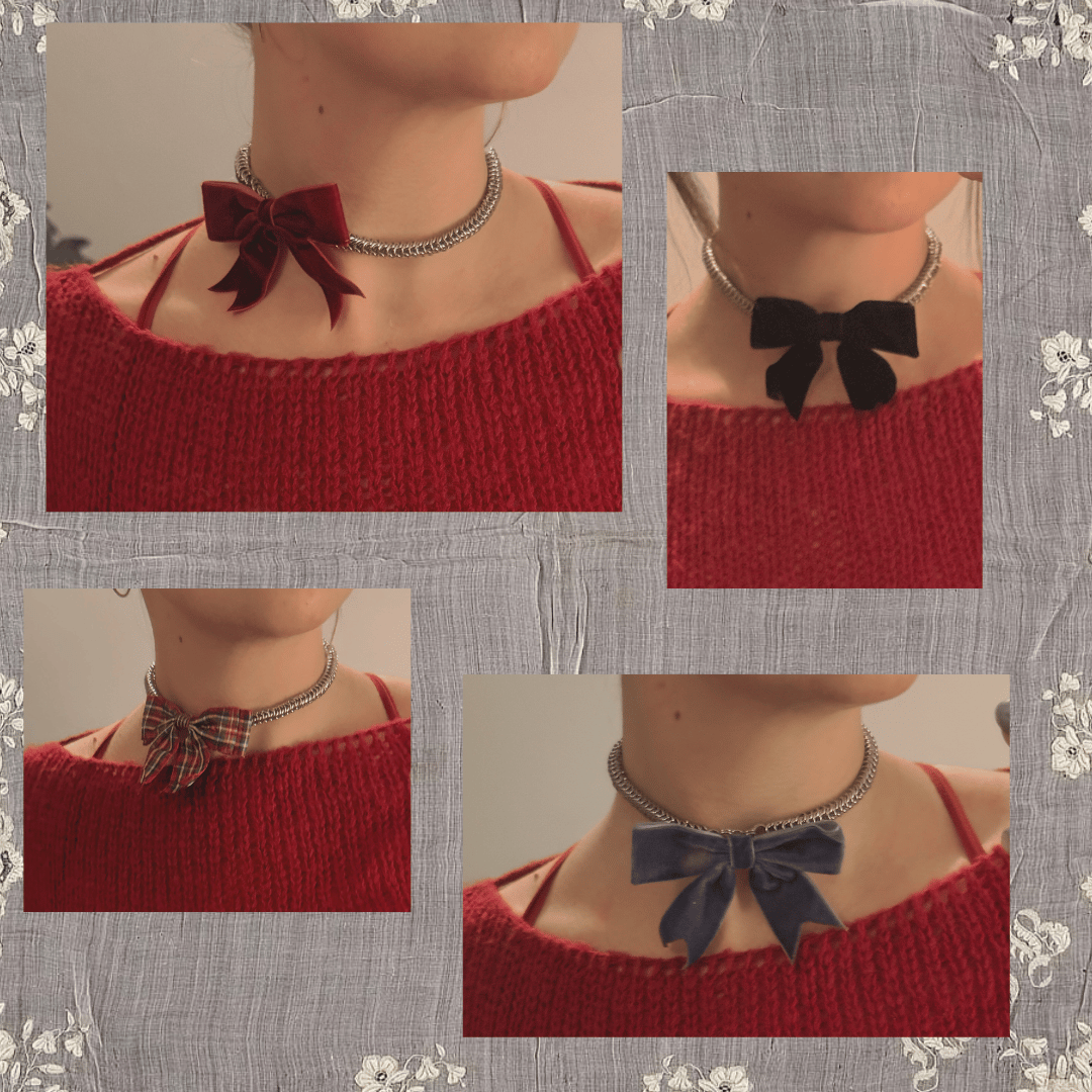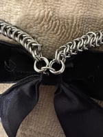 6mm stainless steel links woven in a box weave w a bow pendant, available in four colour ways and centred or off-centre
