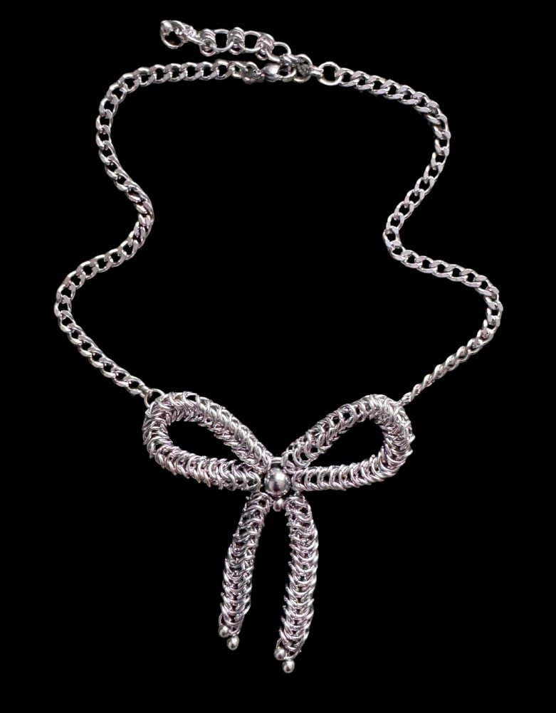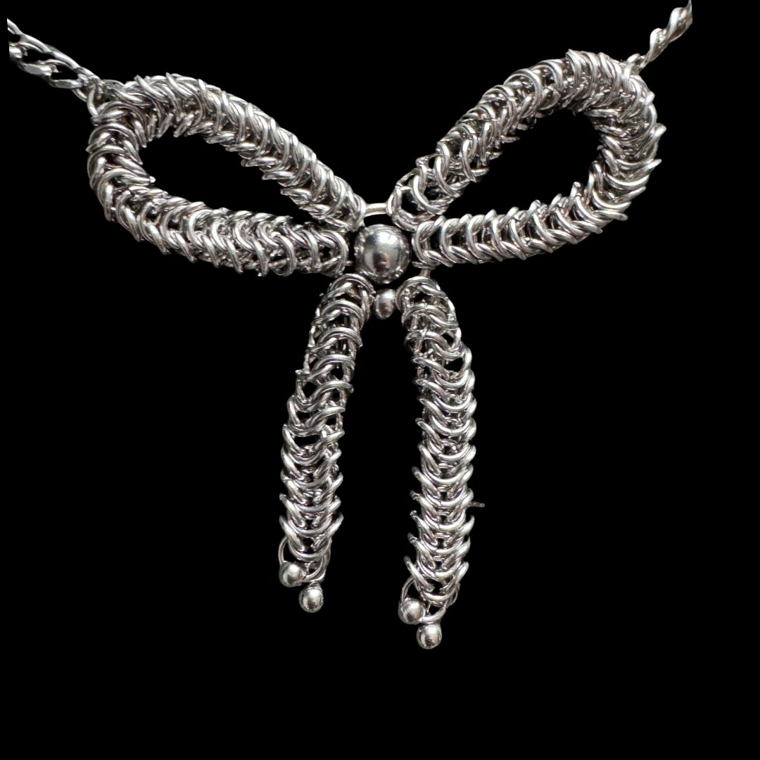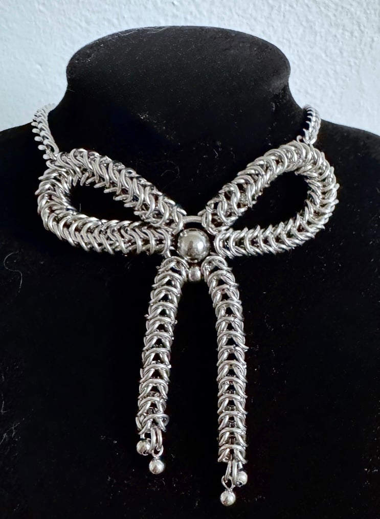 6mm stainless steel links in a box weave with steel spacer beads and stainless steel 5mm curb chain