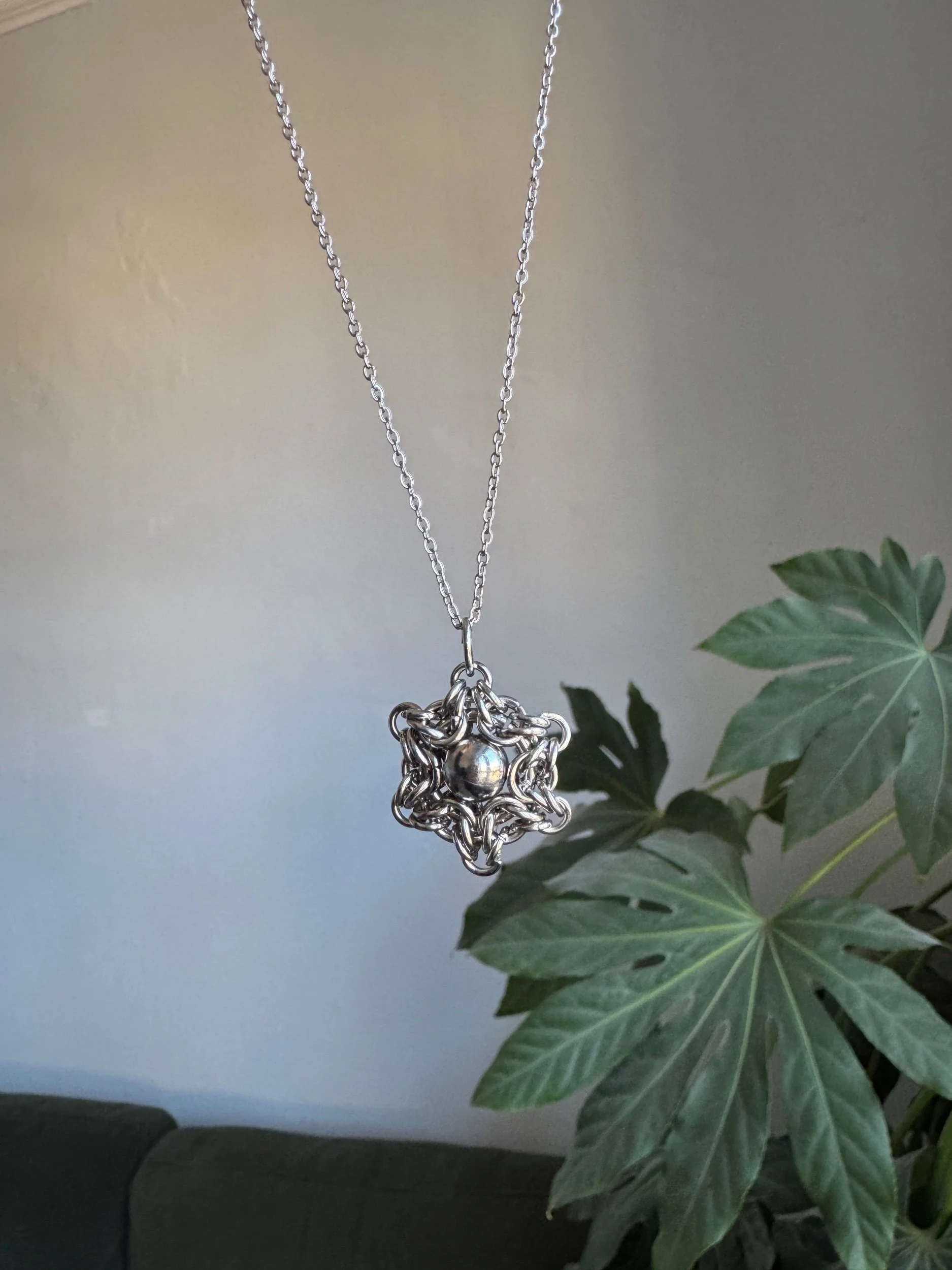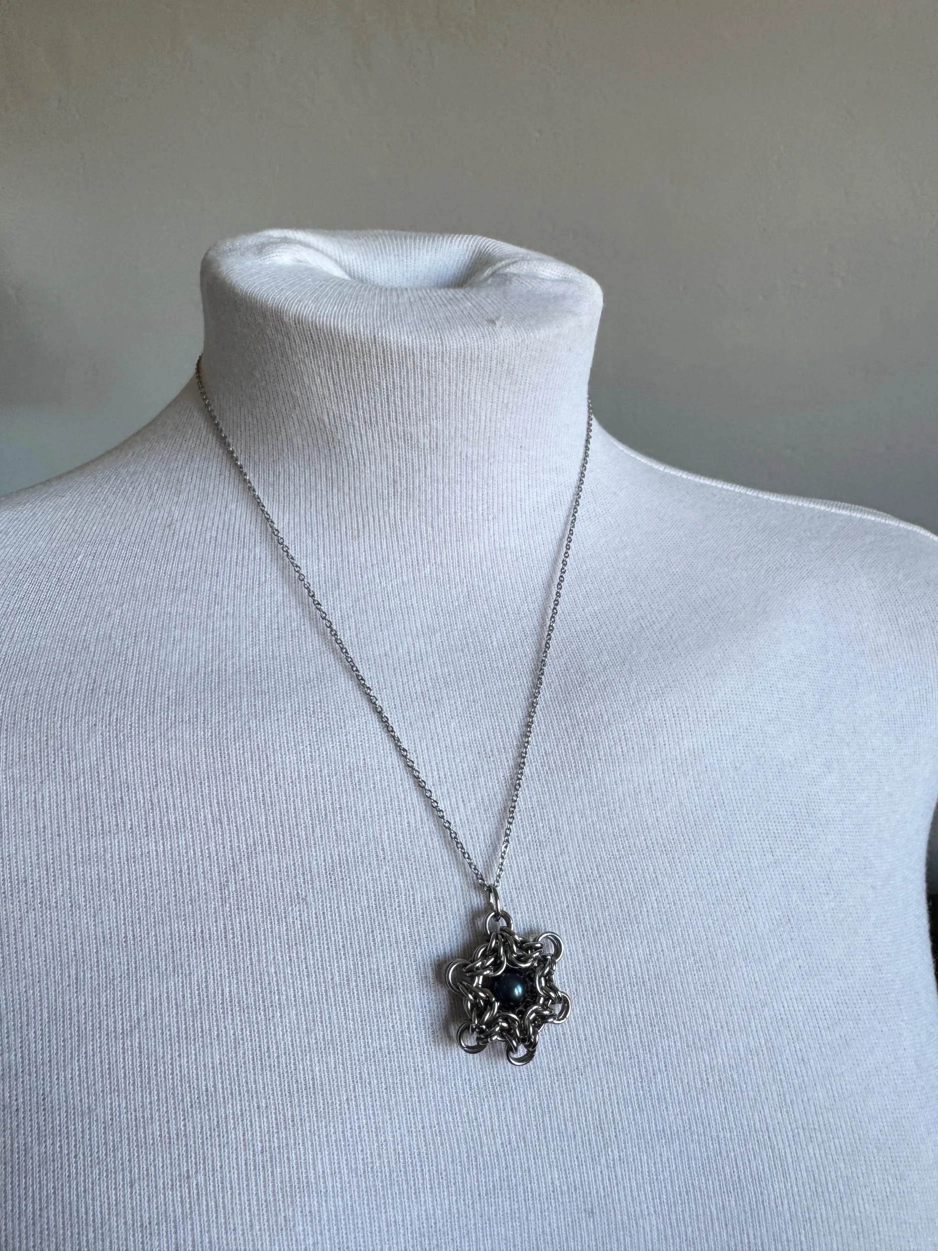 Shop › Byzantine Sun Charm Necklace Image 1 of 4 Image 2 of 4 Image 3 of 4 Image 4 of 4 Byzantine Sun Charm Necklace £15.00 Byzatine 6 point sun charm with blue pearl, green glass or steel bead centreChain length: 17.5cm One of each available Colour: Blue Green Silver Add To Cart Added! Byzatine 6 point sun charm with blue pearl, green glass or steel bead centreChain length: 17.5cm One of each available