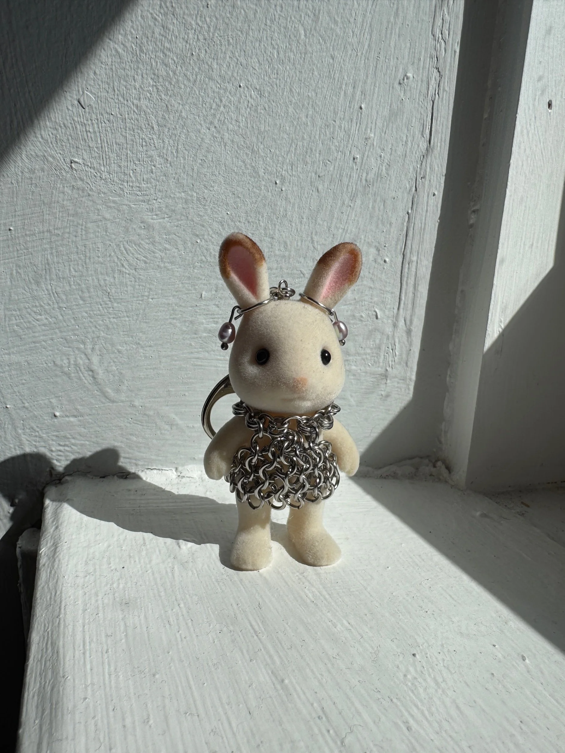 Shop › Mini Warrior Bunny Keyring Image 1 of 2 Image 2 of 2 Mini Warrior Bunny Keyring £18.00 sold out Outfitted Sylvanian Family rabbit in a chainmail outfit with lilac pearl earrings One available Sold Out Added! Outfitted Sylvanian Family rabbit in a chainmail outfit with lilac pearl earrings One available